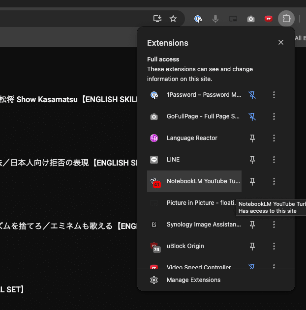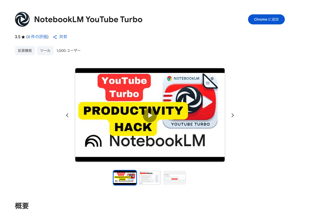 そこで紹介するのが「NotebookLM YouTube Turbo」という拡張機能。