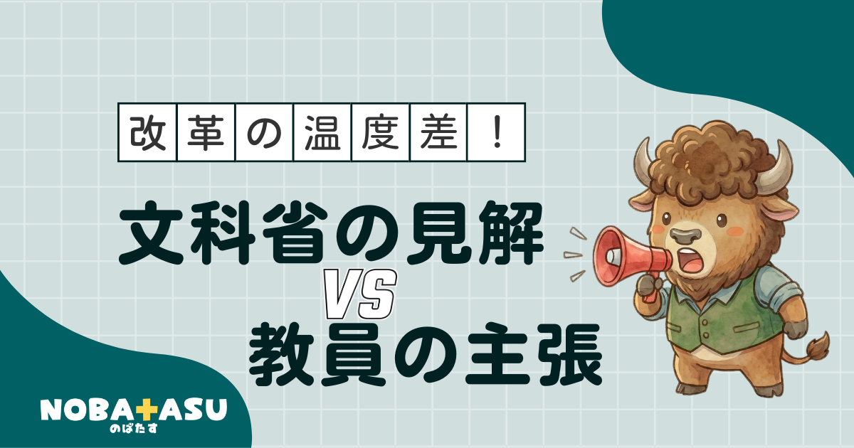 文部科学省(政府)と教員側の主な主張・見解の違いをポイントごとに整理します。